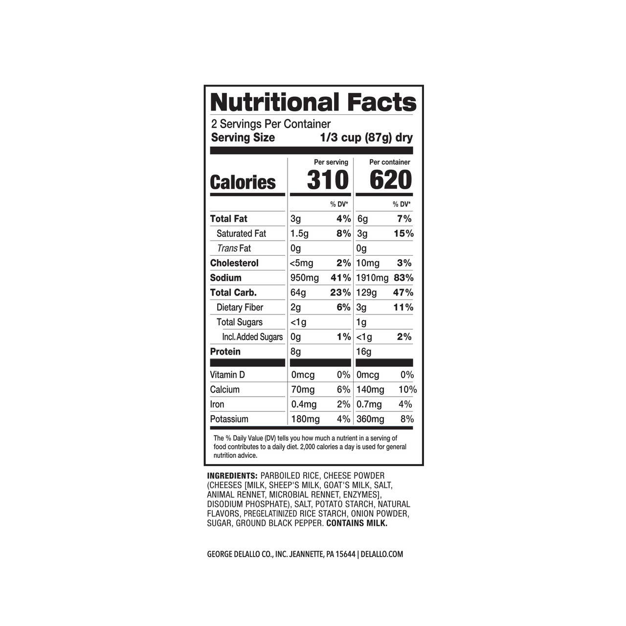 DeLallo Quick-Cook Cacio e Pepe Risotto brings you an authentic Italian recipe in only 15 minutes—just add water! The creamy Arborio rice dish, risotto, comes from Northern Italy, where it is prized for its irresistibly creamy texture and yielding al dente bite. Enjoy it as a simple side dish, a light meal or a hearty entrée paired up with poultry, seafood, seasonal vegetables… the sky is the limit!