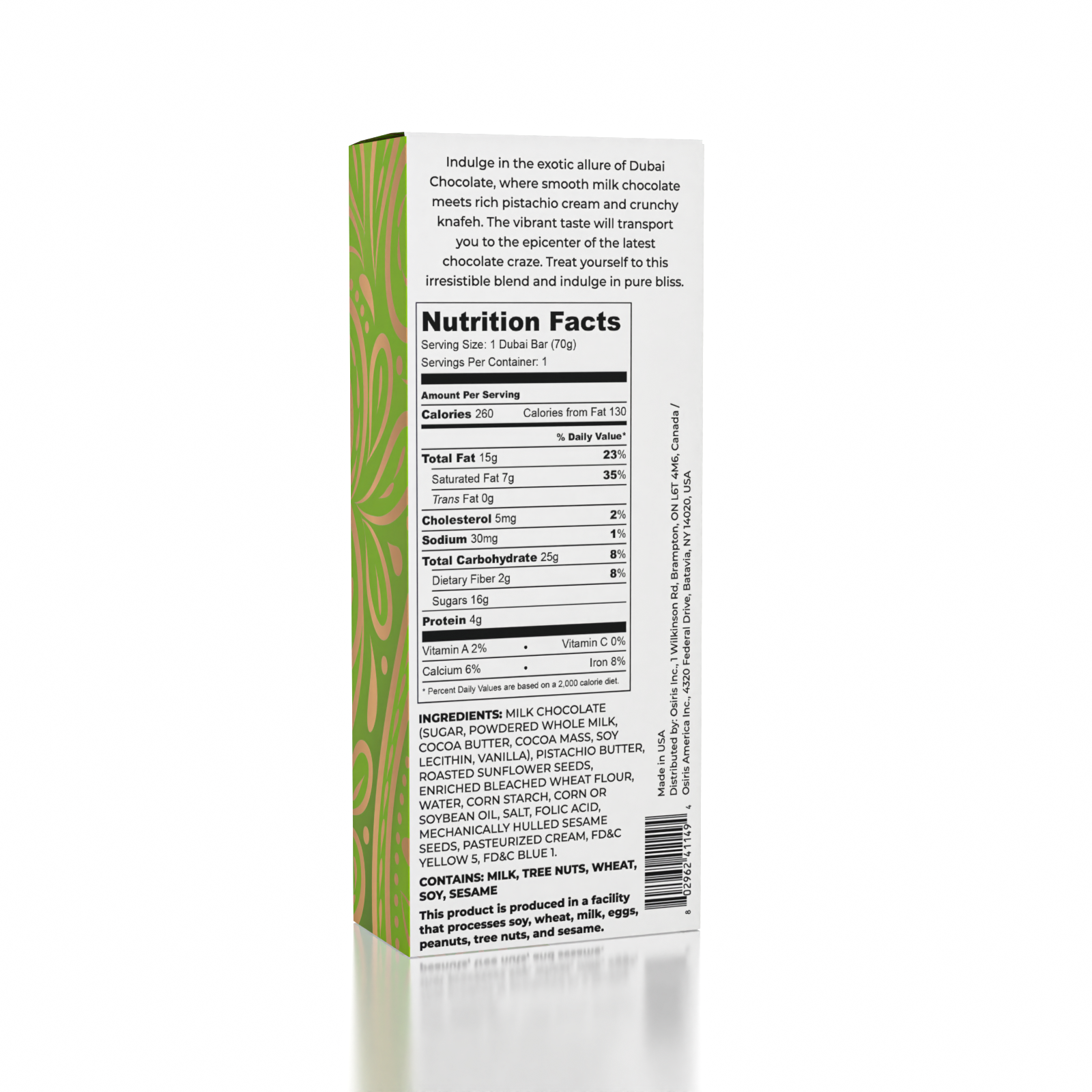 Dubai Chocolate Bar Pistachio by Oasis Treasures Made in USA